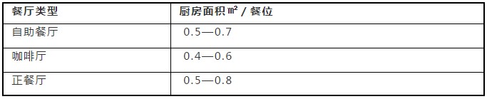 按餐位數(shù)計(jì)算廚房面積要與餐廳經(jīng)營方式結(jié)合進(jìn)行。一般來說,供應(yīng)自助餐餐廳的廚房,每一個餐位所需廚房面積約為0.5-- 0.7平方米;供應(yīng)咖啡廳制作簡易食品的廚房,由于出品要求快速,故供應(yīng)品種相對較少,因此每一個餐位所需廚房面積約為0.4平方米。風(fēng)味廳、正餐廳所對應(yīng)的廚房面積就要大一些,因?yàn)楣?yīng)品種多,規(guī)格高,烹調(diào)、制作過程復(fù)雜,廚房設(shè)備多,所以每一餐位所需廚房面積約為0.5--0.8平方米。