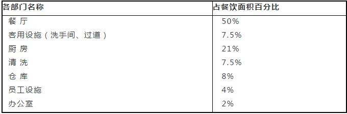 國外廚房面積一般占餐廳面積的40%一60%。根據(jù)日本統(tǒng)計(jì),飯店餐廳面積在500㎡以內(nèi)時(shí),廚房面積是餐廳面積的40%一50%,餐廳面積增大時(shí),廚房面積比例亦逐漸下降 。