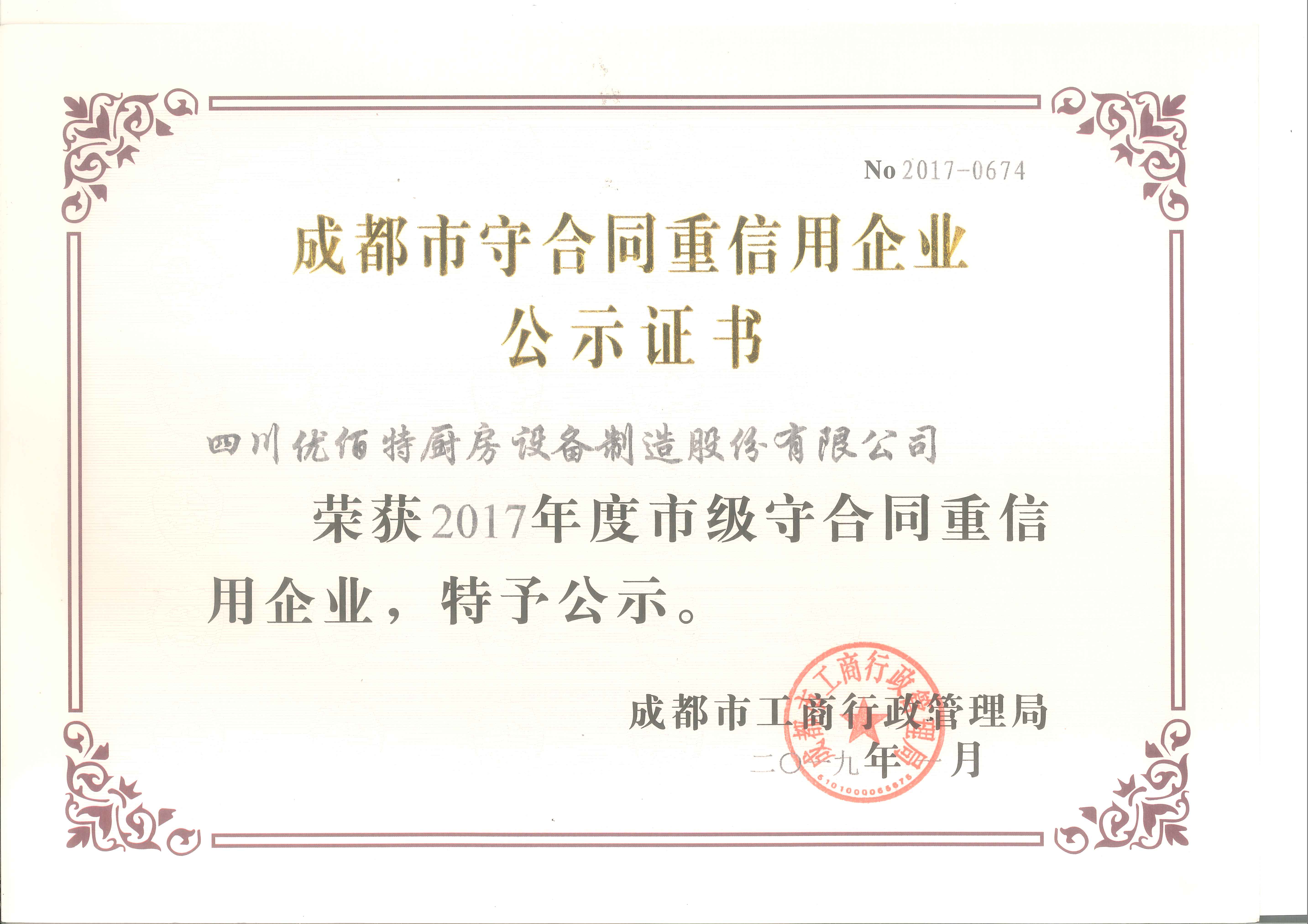 熱烈慶祝我公司榮獲2019年成都市守合同重信用榮譽證書。四川優(yōu)佰特廚房設備公司作為成都廚房設備行業(yè)的老牌生產機構,在其20多年的發(fā)展進程中,一直在商用廚具領域深耕,認真的做好每個產品的細節(jié),做好每個廚房工程項目.同時,優(yōu)佰特在與客戶的交易過程中,也一直遵守國家相關法律的規(guī)定和合同條款的規(guī)定,絕不違返合同要求和損害客戶利益。正是,我們在這么多年的生意中,嚴格要求自己,守合同和重信用,收獲了良好的社會口碑,也得到了社會的積極認可,并被授予2019年成都市守合同重信用榮譽證書。