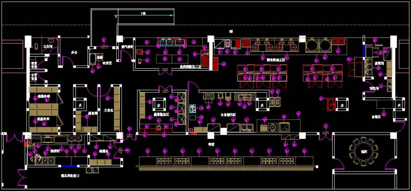 2、必須突出食品安全管理:廚房各工作間有區(qū)域劃分,廚房加工區(qū),與生活、辦公區(qū)域必須分開,并有明顯的區(qū)域界限,不應(yīng)界限不請(qǐng)或互相穿插,在工作區(qū)內(nèi)更不能設(shè)衛(wèi)生間、辦公室,更衣間。特別是要求潔凈度比較高的涼菜間。不允許外人進(jìn)入。餐廳也不允許后廚人員隨意進(jìn)入,消除交叉確保各行其道:員工通行路徑有區(qū)域劃分和出入口方向的區(qū)別,進(jìn)貨、員工出入,垃圾排運(yùn),不應(yīng)與傳菜通道混用,不應(yīng)穿越餐廳。傳菜通道要盡量短,直通餐廳,與收殘有不同出人口。制度約束是必要的.利用有形設(shè)計(jì)規(guī)范員工路徑就更加有效。