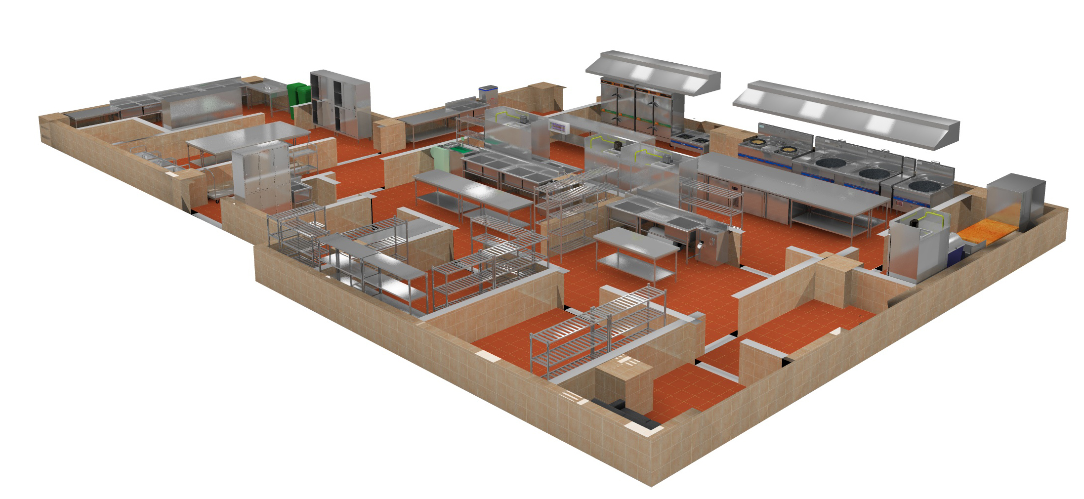 餐飲廚房設(shè)計(jì)主要體現(xiàn)在此類廚房應(yīng)設(shè)計(jì)在靠近原料入口,并且便于垃圾清運(yùn)的地方;同時(shí),應(yīng)有加工本餐飲企業(yè)所需的全部生產(chǎn)原料的足夠空間與設(shè)備。為了保證不同性質(zhì)的生產(chǎn)原料之間不會(huì)互相污染,設(shè)計(jì)要合理的進(jìn)行分隔處理。此外,還需要有足夠的冷藏設(shè)施和相應(yīng)的加熱設(shè)備。