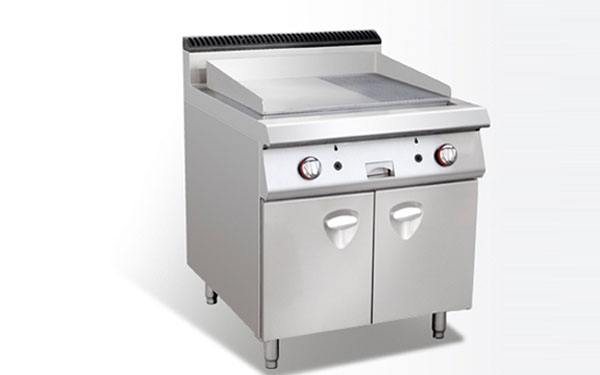 平面煎板又稱平面扒板。其表面是一塊1.5-2厘米厚的平整的鐵板,四周是濾油槽,鐵板下面有一個能抽拉的鐵盒。熱能來源主要有電和燃?xì)鈨煞N,靠鐵板傳熱使被加熱物體均勻受熱。使用前應(yīng)提前預(yù)熱。