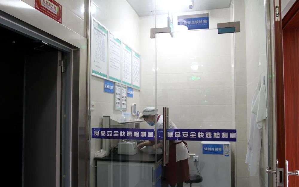 在后廚走了一圈,智能出入庫電子秤等眾多的智能監(jiān)控設(shè)備讓見我們漲了不少見識(shí),尤其是位于后廚最里面的一間食品安全快速檢測室簡直讓人大開眼界。據(jù)介紹,在每日的菜品入庫中,如工作人員發(fā)現(xiàn)食材不夠新鮮,質(zhì)量不太好,但又無法斷定時(shí),他們便可進(jìn)入食品安全快速檢測室,借助精密的儀器進(jìn)行檢測,菜品質(zhì)量好不好15分鐘就能出結(jié)果,“不過關(guān)的食材,我們堅(jiān)決退回。”副校長表示學(xué)校對(duì)所使用的食材嚴(yán)格把關(guān)。