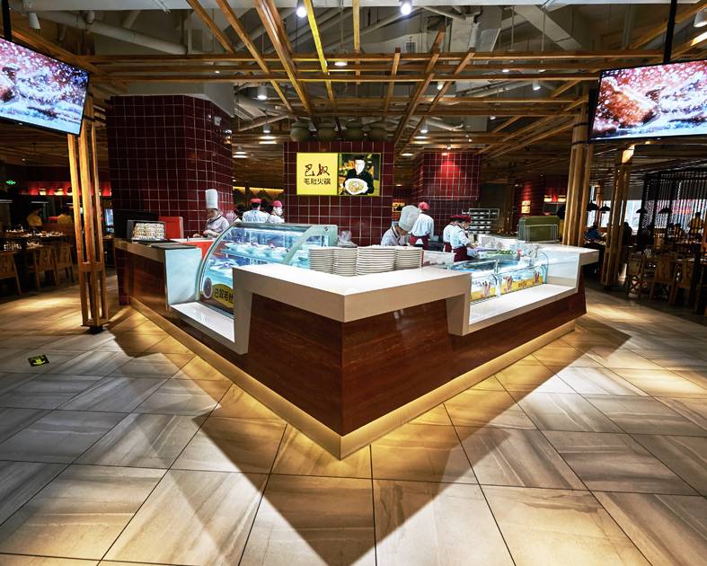 “點菜區(qū)”為了讓客人一目了然,在餐廳設立點菜區(qū),設置點菜柜、風幕柜、熟食柜、冷藏展示柜、海鮮魚缸、貝類池等展示實物,使顧客可以親眼看到菜品或主輔料。這種“菜單式明檔”,也是一種開放的方式,占用的空間有限,中小酒店都可以應用。