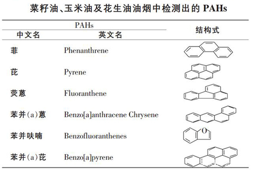 再來看PAHs,PAHs即多環(huán)芳烴。在此前的報(bào)道中,就曾指出食用油在高溫過程中會產(chǎn)生具有生殖毒性、致癌性及致突變型的多環(huán)芳烴有機(jī)物,但由于不確定物質(zhì)的具體成分,不少人也是半信半疑。但隨著苯并芘、二苯并蒽等物質(zhì)在菜籽油中的檢出,人們陸續(xù)開始認(rèn)識到油煙中PAHs的真面目。根據(jù)對菜籽油、花生油以及玉米油的檢測,油煙中的PAHs主要包括菲、芘、熒蒽、苯并蒽、苯并呋喃以及苯并芘等,其中花生油油煙中的PAHs含量最高,達(dá)到了22.8ug/m3,其次是玉米油,含量為5.50ug/m3,菜籽油僅為1.08ug/m3。而玉米油油煙中除了上述物質(zhì),還包含了苯并呋喃。