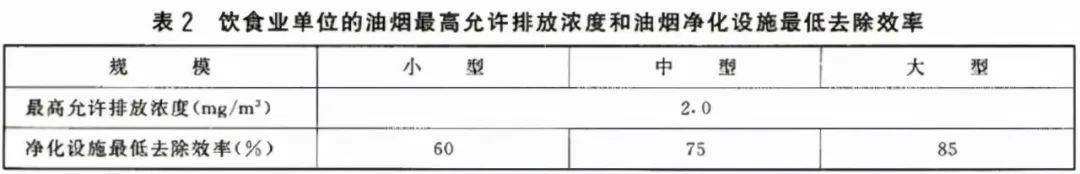 在我國(guó)對(duì)油煙排放有著嚴(yán)格的限制,國(guó)標(biāo)《飲食業(yè)油煙排放標(biāo)準(zhǔn)(GB18483-2001)》規(guī)定,油煙排放濃度不得超過(guò)2.0mg/m3,相應(yīng)凈化系統(tǒng)的凈化效率大型系統(tǒng)不得低于85%,中型系統(tǒng)不得低于75%,小型系統(tǒng)不得低于60%。