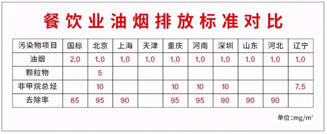 而國(guó)內(nèi)一些地區(qū)油煙排放標(biāo)準(zhǔn)不允許排放濃度超過(guò)1.0mg/m3,北上廣深天津、重慶、河南等地區(qū),嚴(yán)格了一倍,安裝的油煙凈化器凈化效率達(dá)到90%—95%以上。