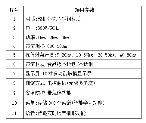 半自動(dòng)GB系列(無菜譜錄制、自動(dòng)烹飪功能)炒菜機(jī)參數(shù)