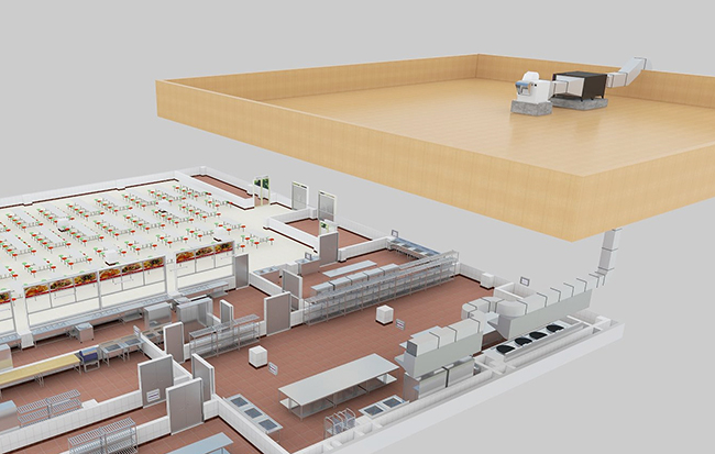 4.分區(qū)控制:商用廚房采用分區(qū)控制的安裝配置方法,即餐廳廚房分為幾個(gè)區(qū)域,每個(gè)區(qū)域根據(jù)排氣量和面積和空氣質(zhì)量分配新鮮空氣總量,通過直徑防火閥控制。