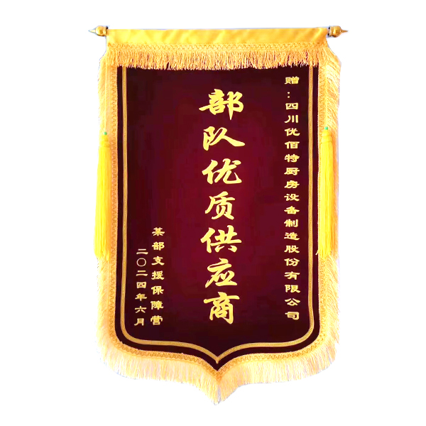 熱烈祝賀優(yōu)佰特獲贈“部隊優(yōu)質(zhì)供應商”錦旗一面。我們公司在6月份的項目中,有一個成都某部隊的食堂廚房。由于是給部隊建設廚房,而且部隊的作風都是雷厲風行,所有的設備都必須在規(guī)定的時間內(nèi)生產(chǎn)安裝完成。為了能夠滿足部隊的需要,我公司在接到訂單后就馬不停蹄的生產(chǎn),快速組織生產(chǎn)人員加班加點的趕進度,把整個廚房設備都快速的保質(zhì)保量的生產(chǎn)安裝完畢。我們的出色表現(xiàn),解決了部隊官兵的用餐問題,獲得了部隊領導的高度好評和認可,為了感謝我們配合工作,特送“部隊優(yōu)質(zhì)供應商”錦旗一面,以此嘉獎我們做出的貢獻。