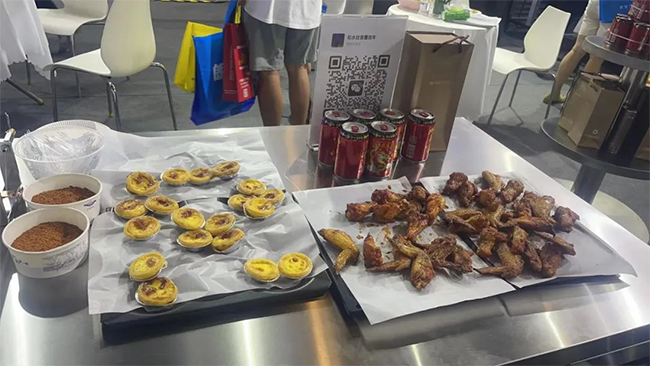 為了提高大家對(duì)設(shè)備的體驗(yàn),這次展會(huì)我們還專門邀請(qǐng)了廚師,準(zhǔn)備了食材,用參展的設(shè)備現(xiàn)場(chǎng)制作食物,讓前來(lái)參觀的游客免費(fèi)品嘗美食,增加對(duì)機(jī)器設(shè)備性能的了解。